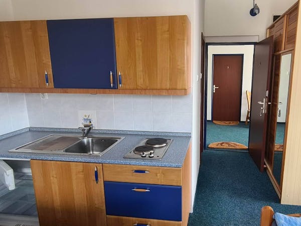 Prepare delicious meals in the fully equipped kitchen, complete with a small refrigerator and freezer. Unwind in the inviting TV corner after a day of exploration, or catch up on work and stay connected with our fast and reliable WiFi. The apartment also includes a private bathroom with a shower and WC for your convenience.