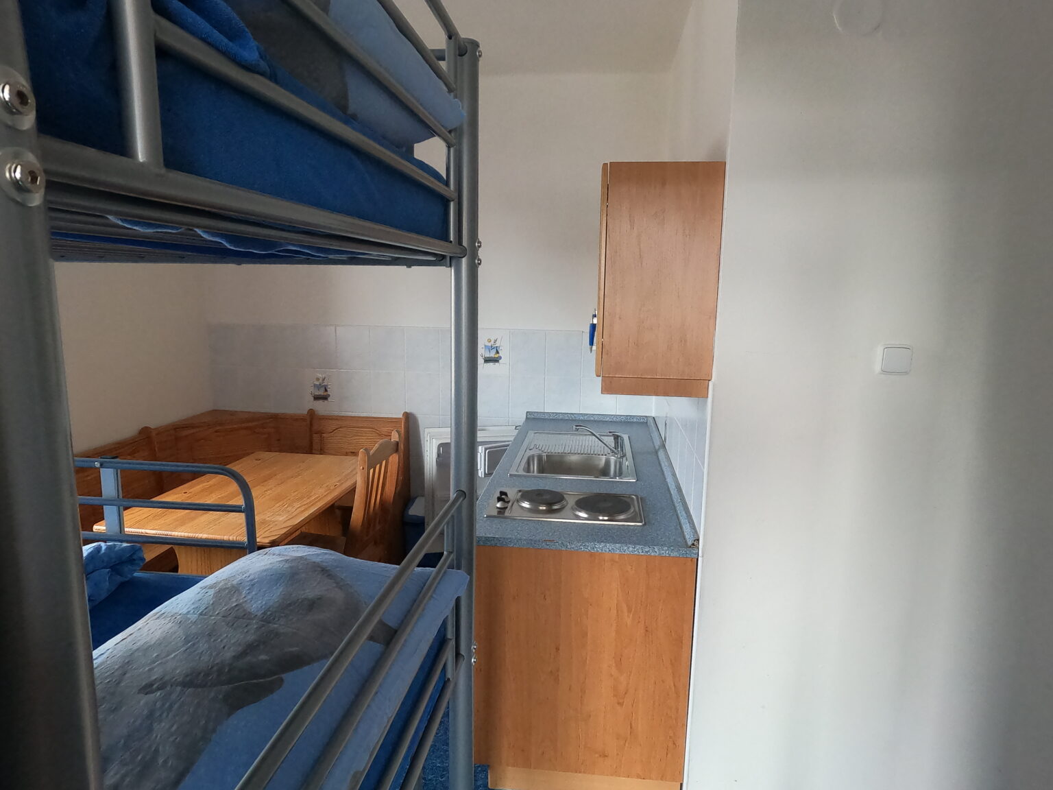 Prepare delicious meals in the fully equipped kitchen, complete with a small refrigerator and freezer. Unwind in the inviting TV corner after a day of exploration, or catch up on work and stay connected with our fast and reliable WiFi. The apartment also includes a private bathroom with a shower and WC for your convenience.